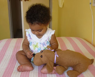 We had a great time with Aunt Phyllis and Uncle Dave. I somehow ended up with no picture of Ani with Uncle Dave but she loved them both. Aunt Phyllis had all kinds of toys ready for her and even made her a pound puppy! It is so cute! I will post a picture soon! On our last night there she fell asleep on Aunt Phyllis. She won't fall asleep with just anybody so that says a lot about how attached she got to her. Uncle Dave made funny duck sounds and even dropped off a dirty diaper at the lab for her! Aunt Phyllis was so patient and sat and played with her and walked her and even held her so I could eat! I also got to "help" Aunt Phyllis decorate for Christmas. I am not sure how much help I was, but it was fun. Aunt Phyllis also gave me a 7.5 foot tree and lots of stuff to decorate so today I decorated our house. Ani loves the lights! I will post pics of that soon too.